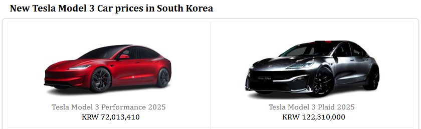 한국 시장에서는 다음과 같은 2025년형 테슬라 모델3 가격이 확인됩니다: